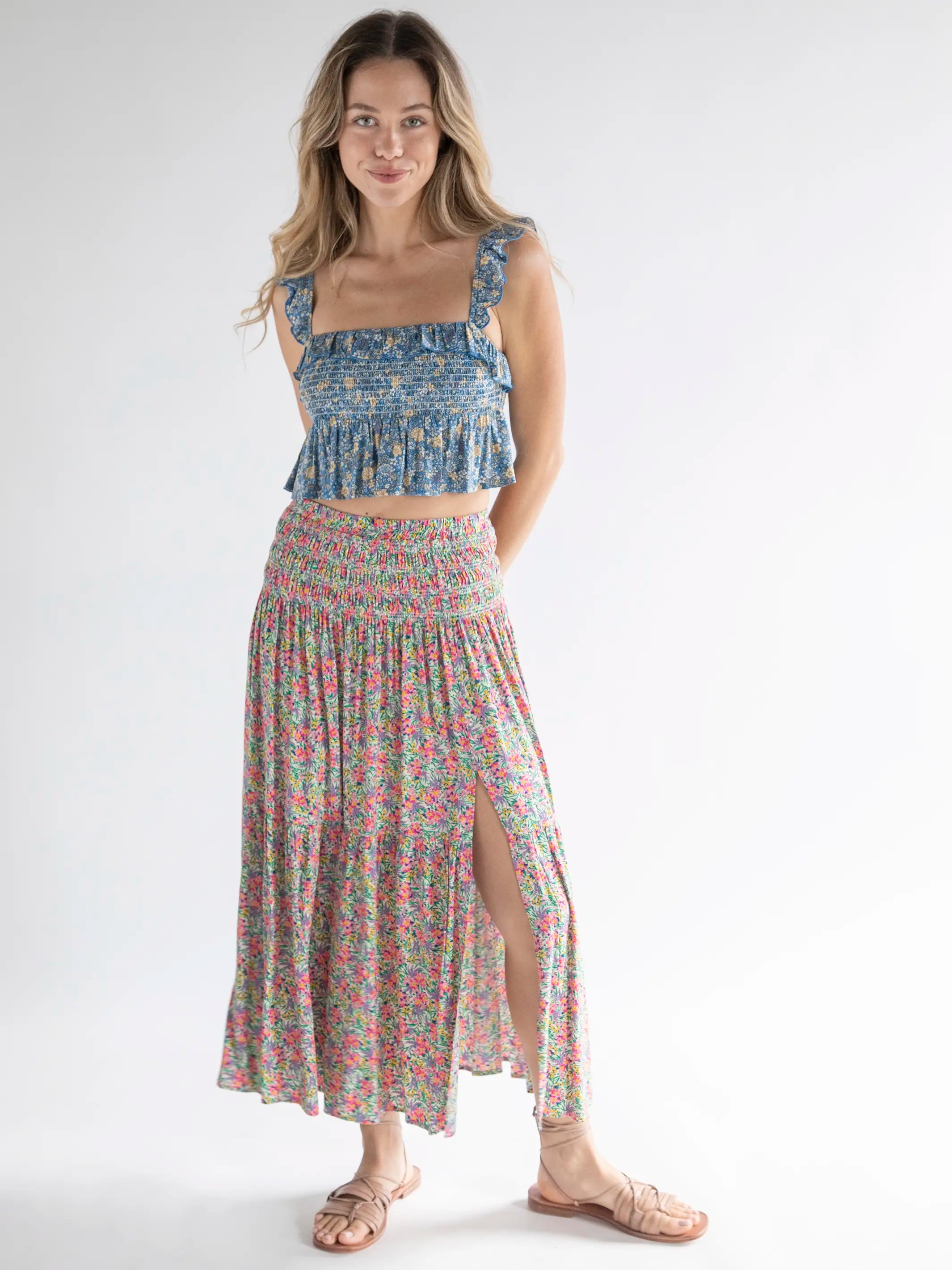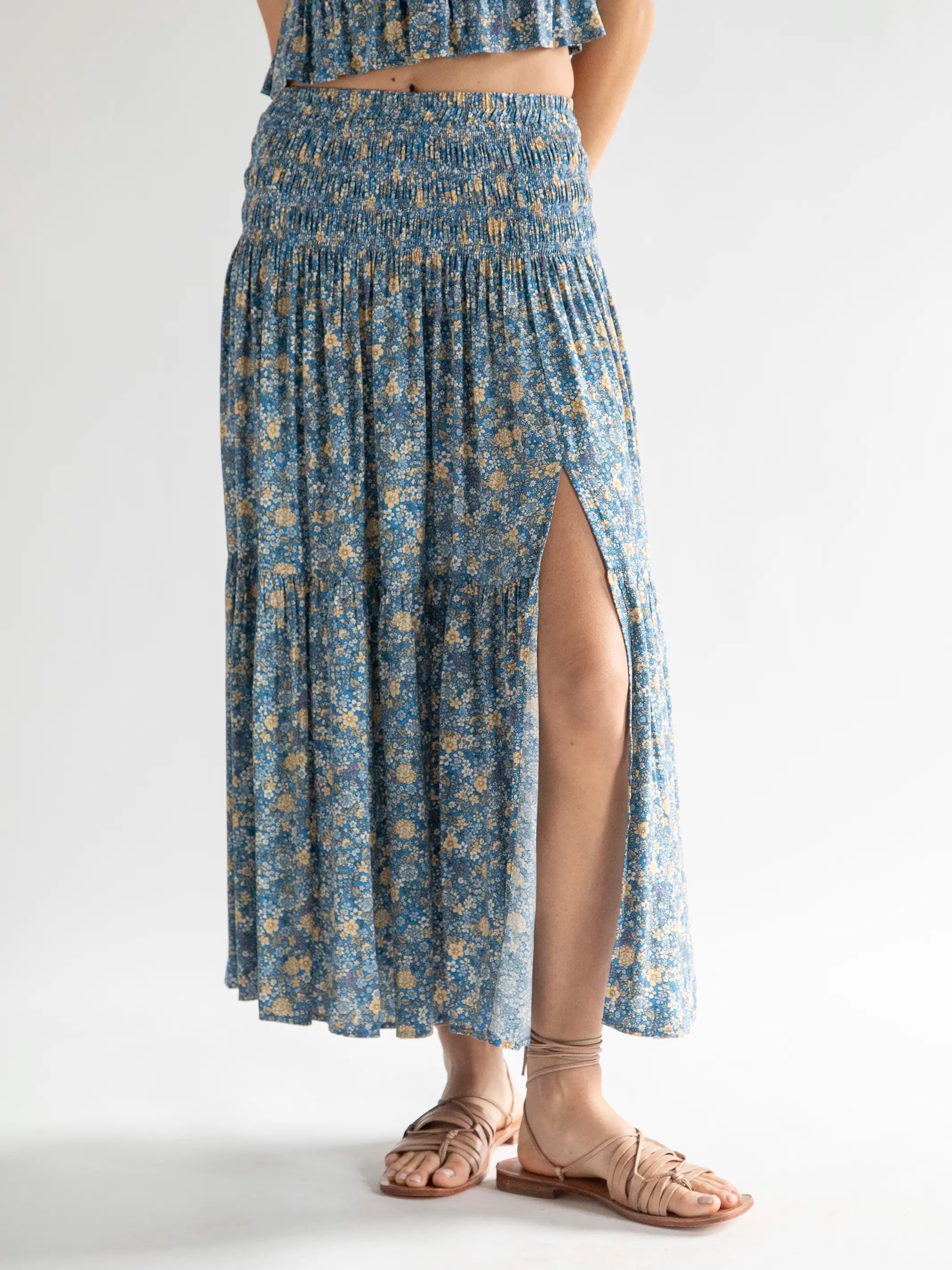 Angelina Midi Skirt - Blue Ditsy Floral
