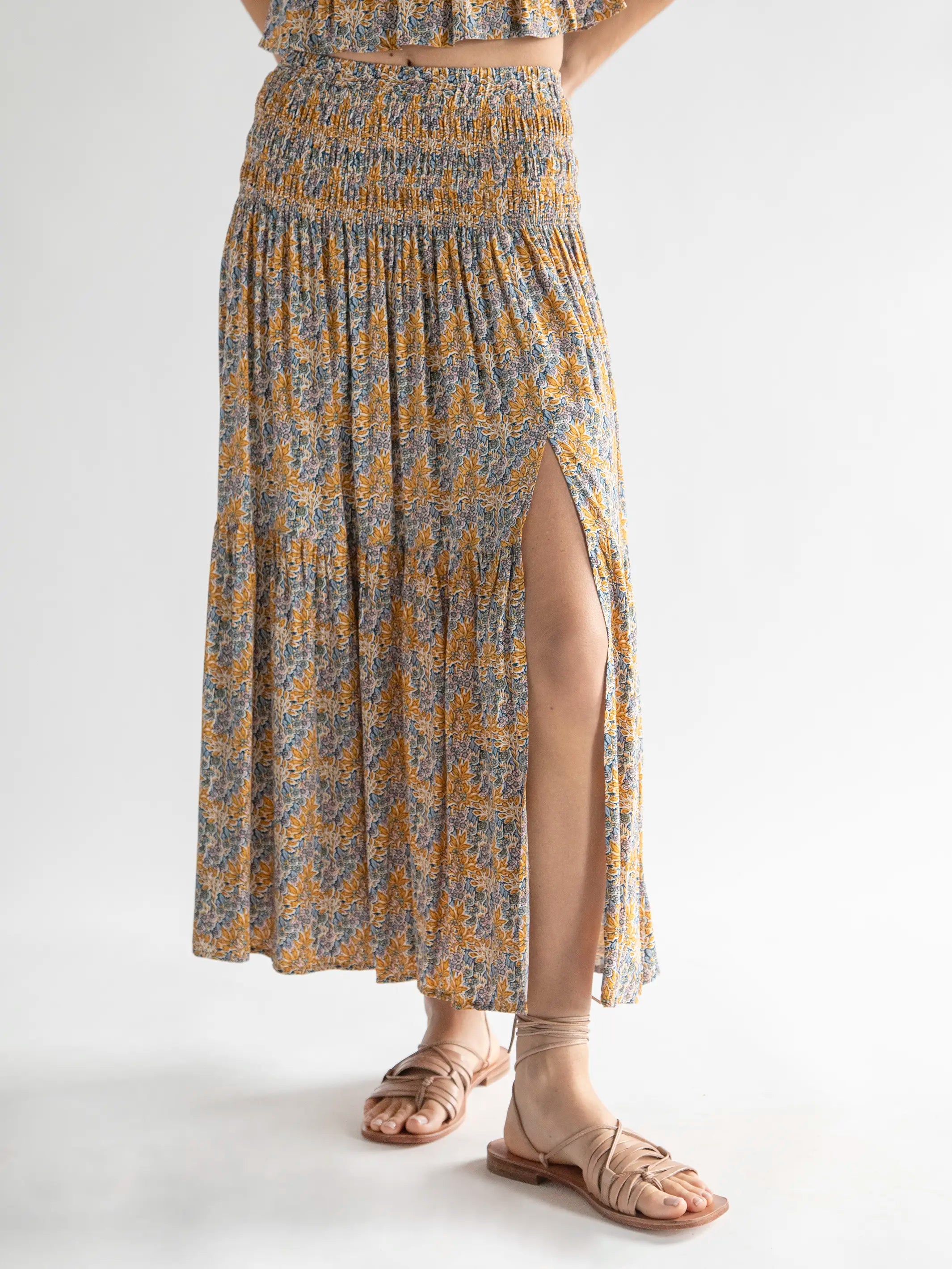 Angelina Midi Skirt - Yellow Floral