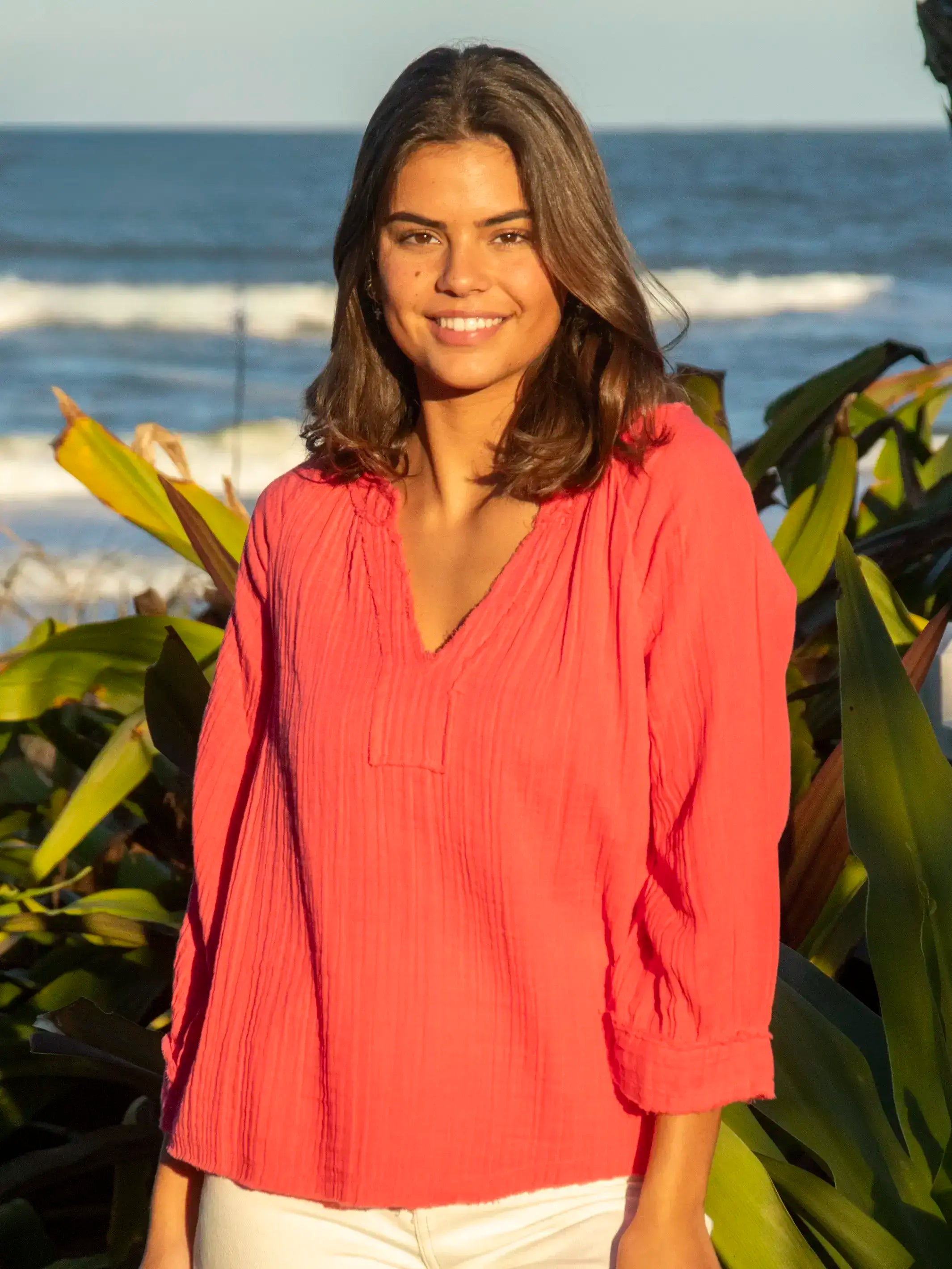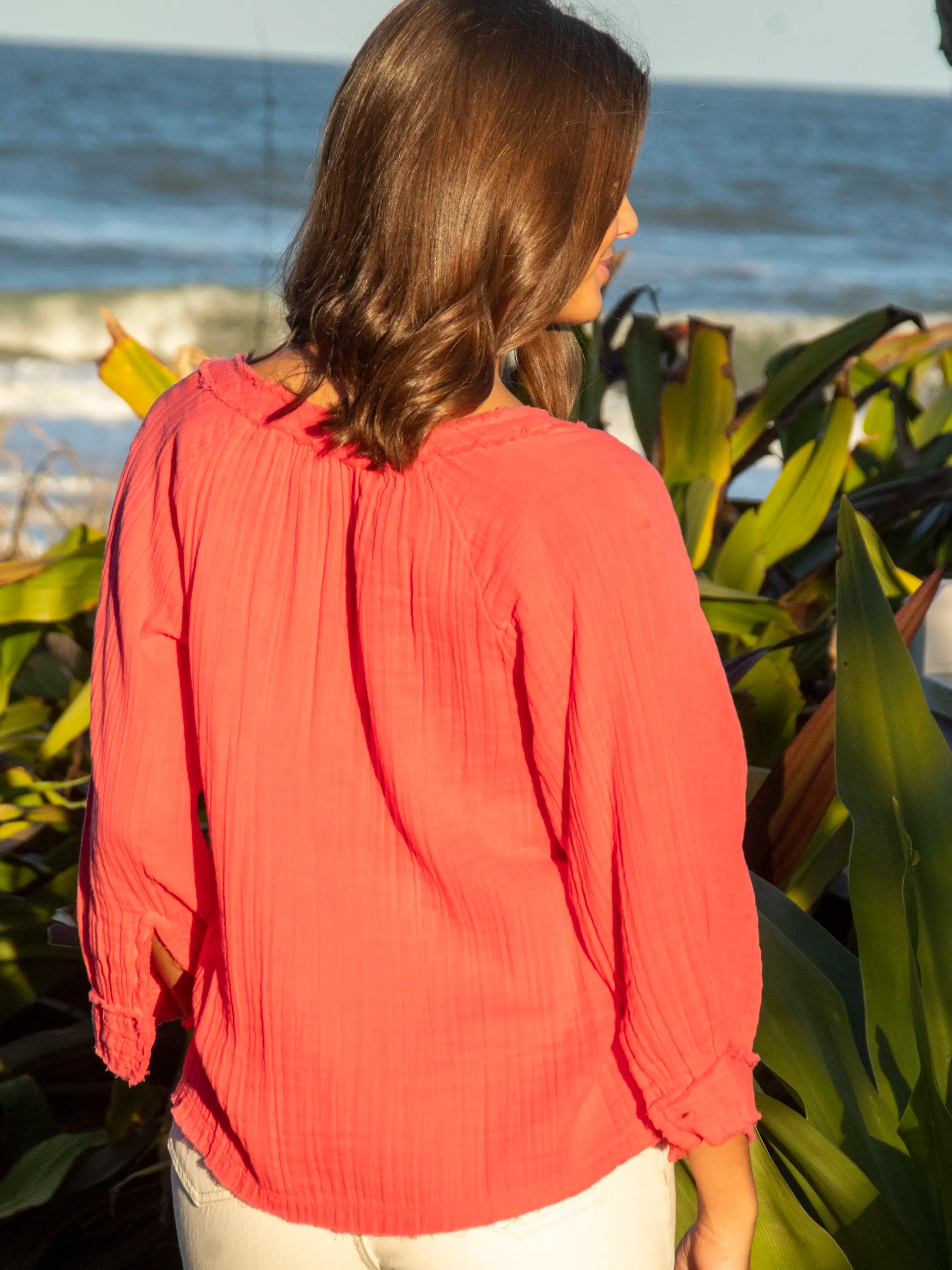 Robyn Cotton Gauze Top - Coral