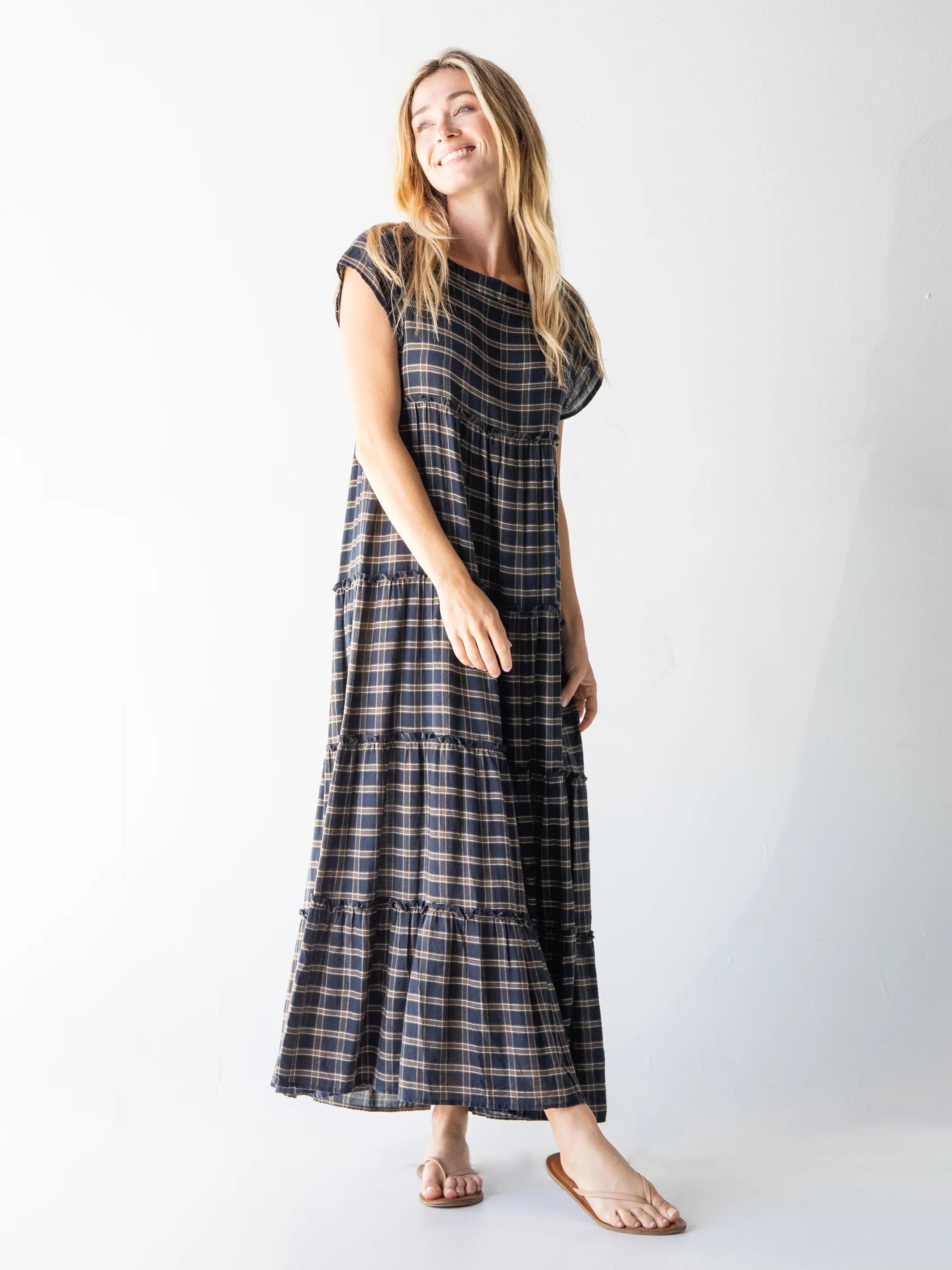 Plaid Berkley Maxi Dress - Navy Tan Plaid