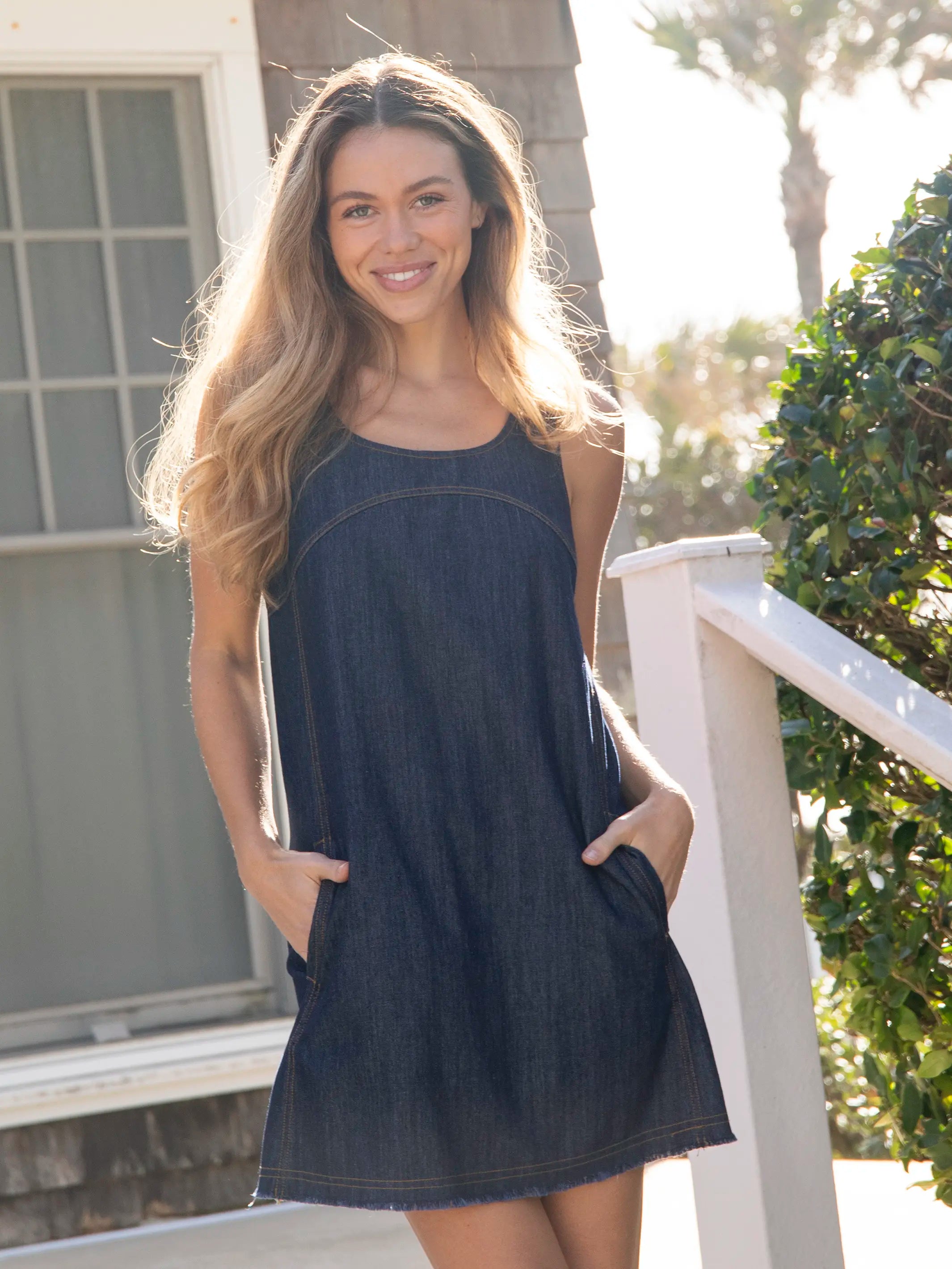 Misty Oversized Cotton Tee Mini Dress - Navy Tie-Dye
