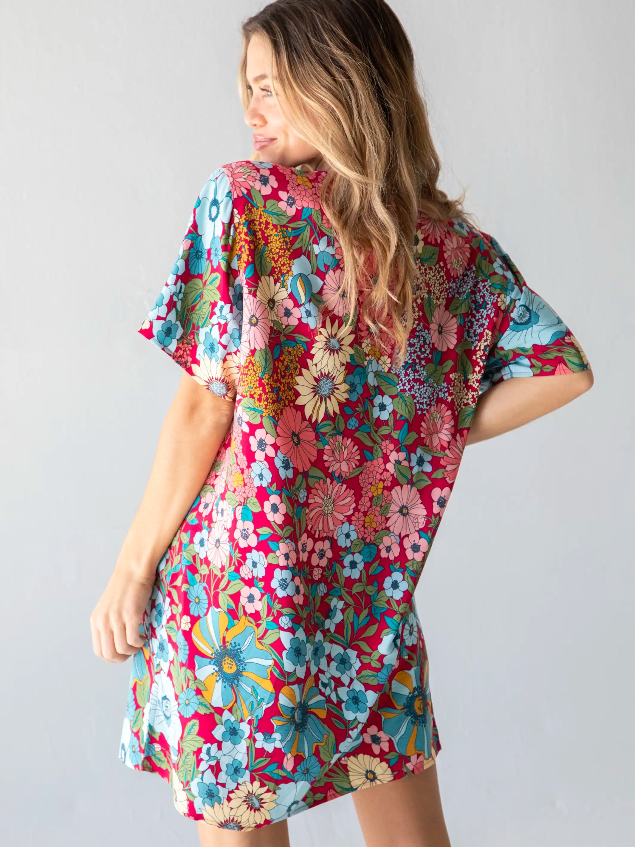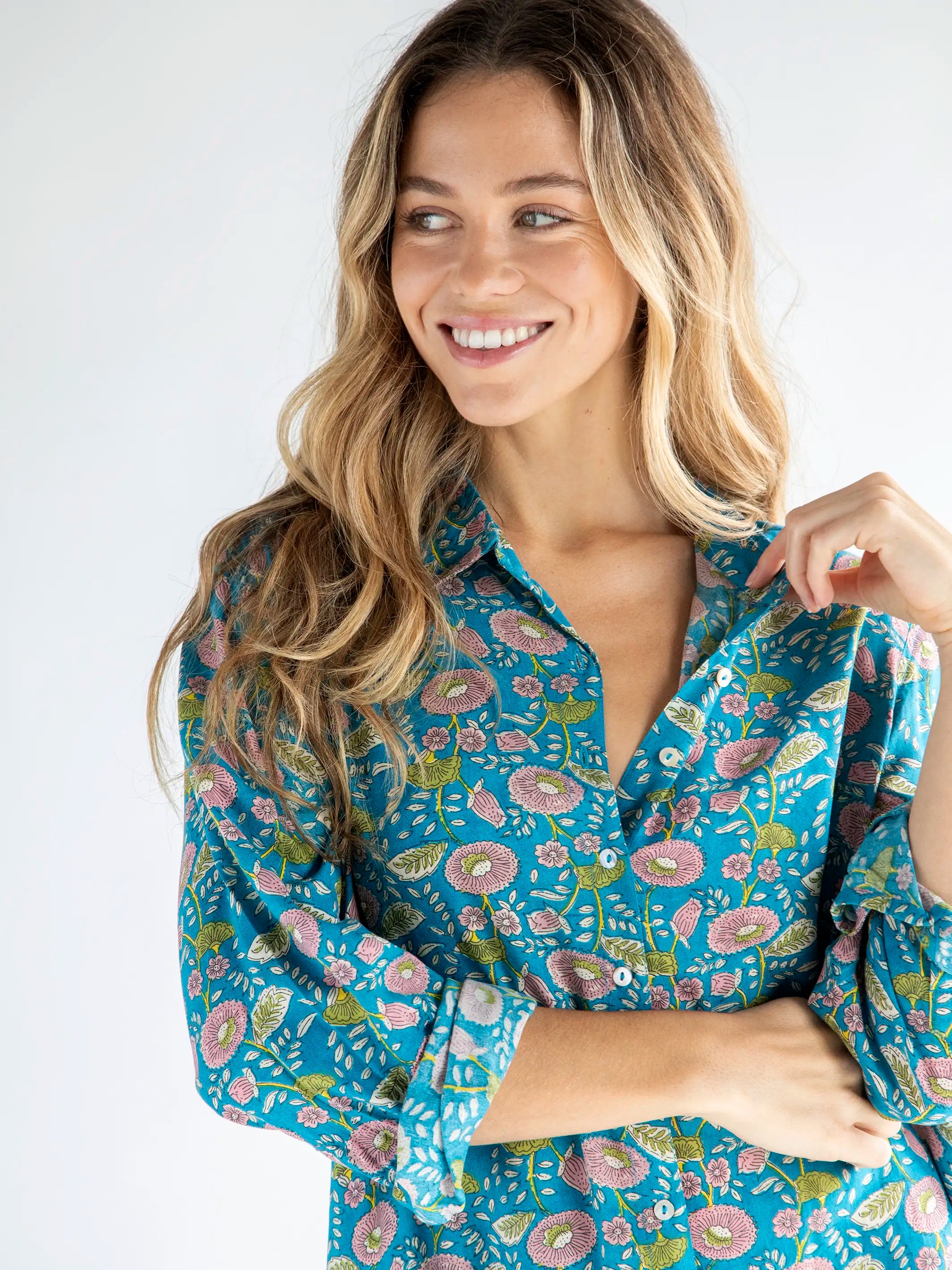 Georgia Shirt Dress - Blue Pink Floral Vines