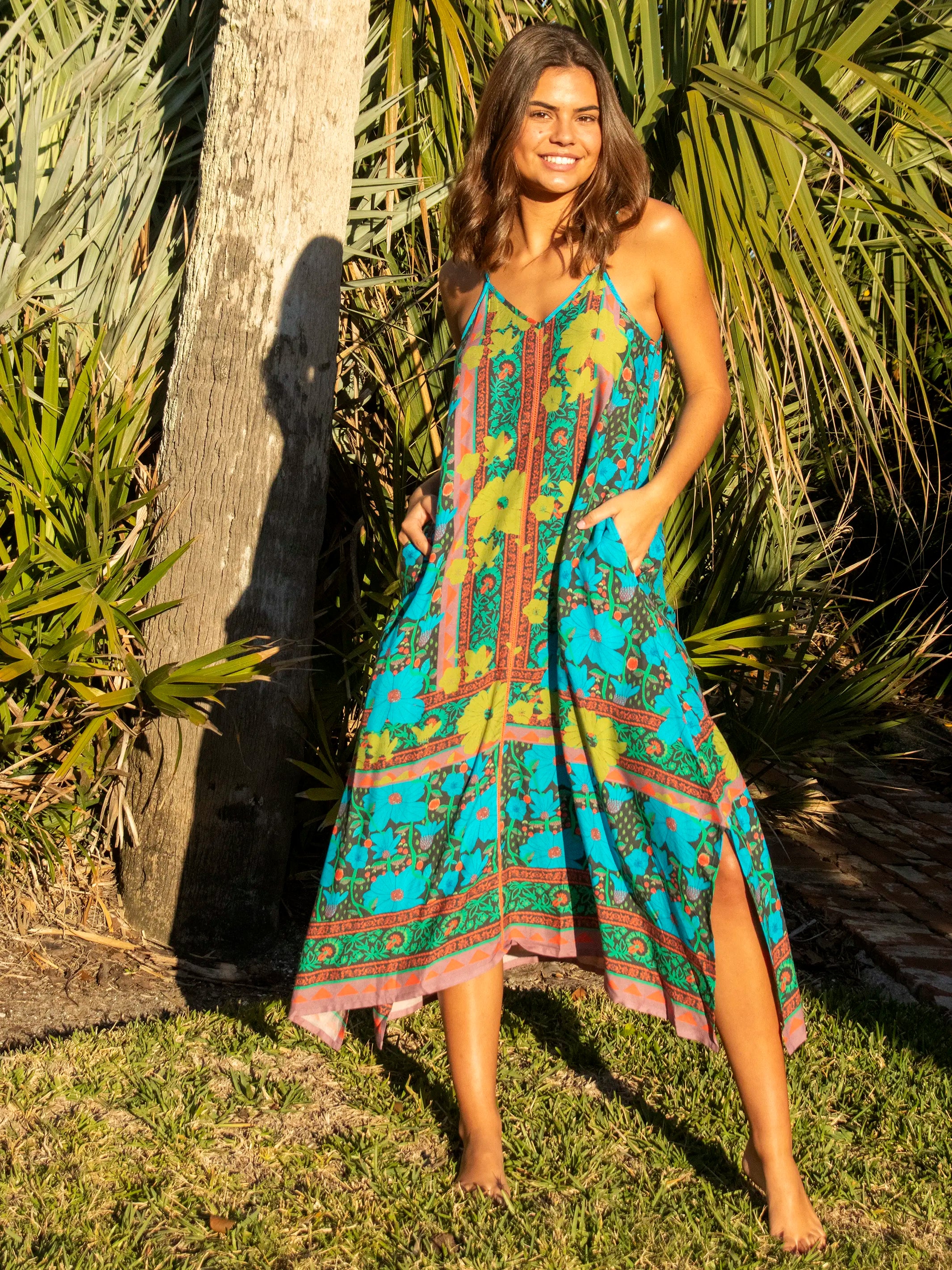 Havana Nights Maxi Dress - Turquoise Pink Floral