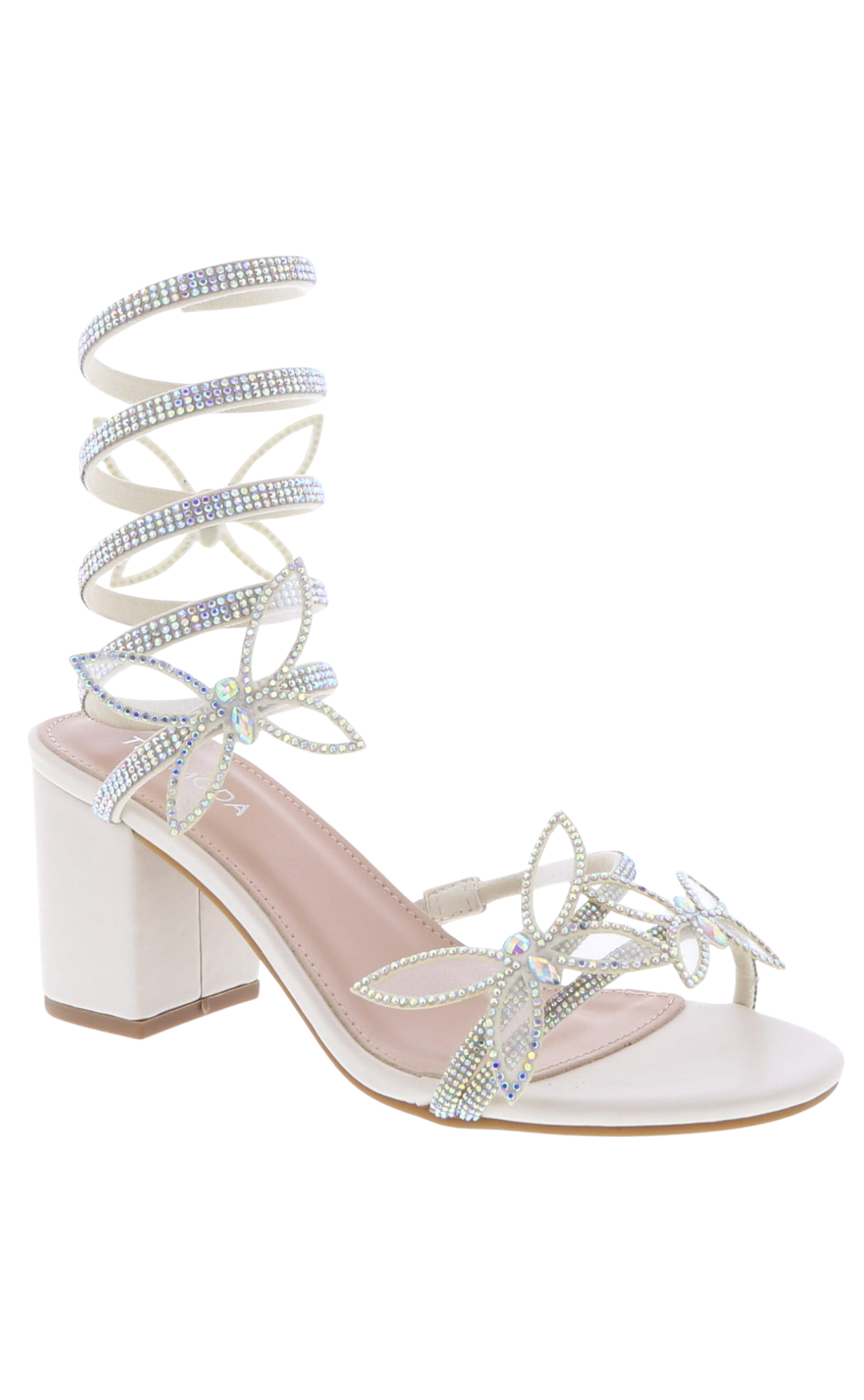 Elevate your style with Zodiac - Embellished Single Sole Heels. Featuring an adjustable spiral coil strap and lightly padded insole for comfort. The open rounded toe and slip on entry make for easy wear. Rhinestone detailing and butterfly details add a touch of glamour. Perfect for any fashion-forward look.
